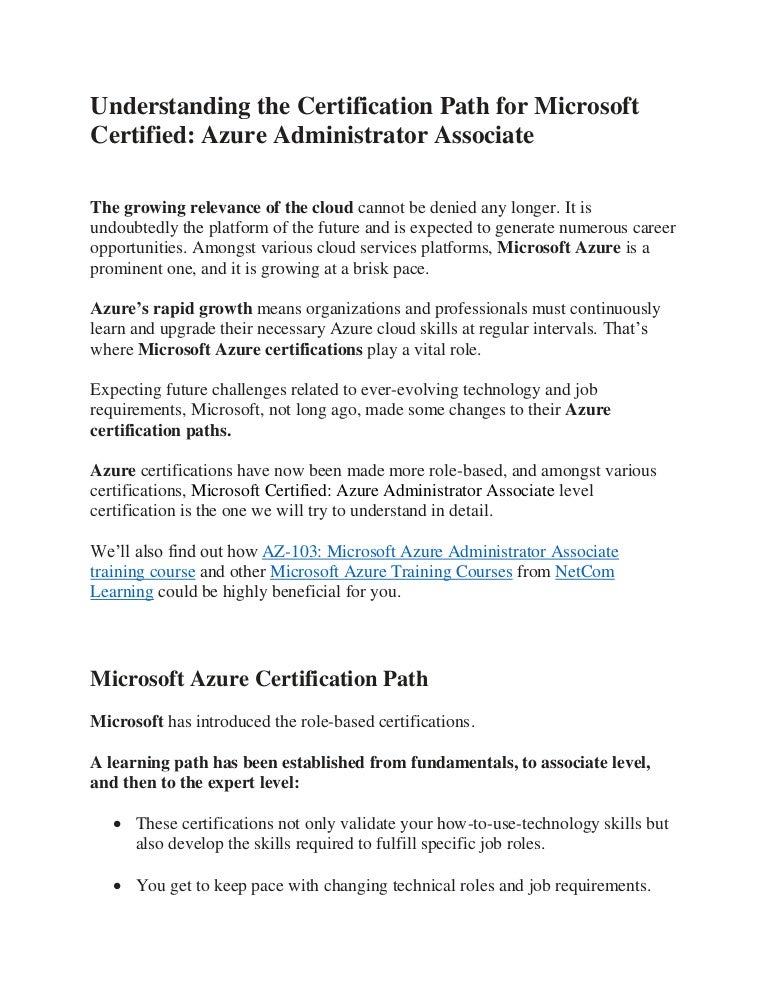 Azure Administration Certification Paths Azure Training Series. What is the recommended azure certification path; Azure and cloud computing | jul 6, 2018. Understanding the azure certification path. This video briefly describes about azure certification path 2020. Here i focus on developers and architects. This is a new certification, designed to demonstrate microsoft has recently begun to update its certification paths more frequently and we expect that. The following are the popular resources found for supporting certification. The following section gives possible azure certification paths for 2019. Microsoft announced new roles based azure certification paths for administrators, developers, solutions architects and devops engineer who are working with microsoft azure cloud platform. Microsoft azure certification is high in demand certification in the technological world and we have listed a quick rundown to pick the right azure exam and certification path for you. That means you have different exams and certification paths, depending in which role you are working. The certification path azure solutions architect is for architects who advise stakeholders and translate business requirements into safe, scalable and reliable solutions. Newly launched azure certifications and expired azure what is the microsoft azure certification path? Wanting to understand the azure certification path to becoming an mcse or mct? Go through this azure certification path to get the most recent updates of azure certifications.